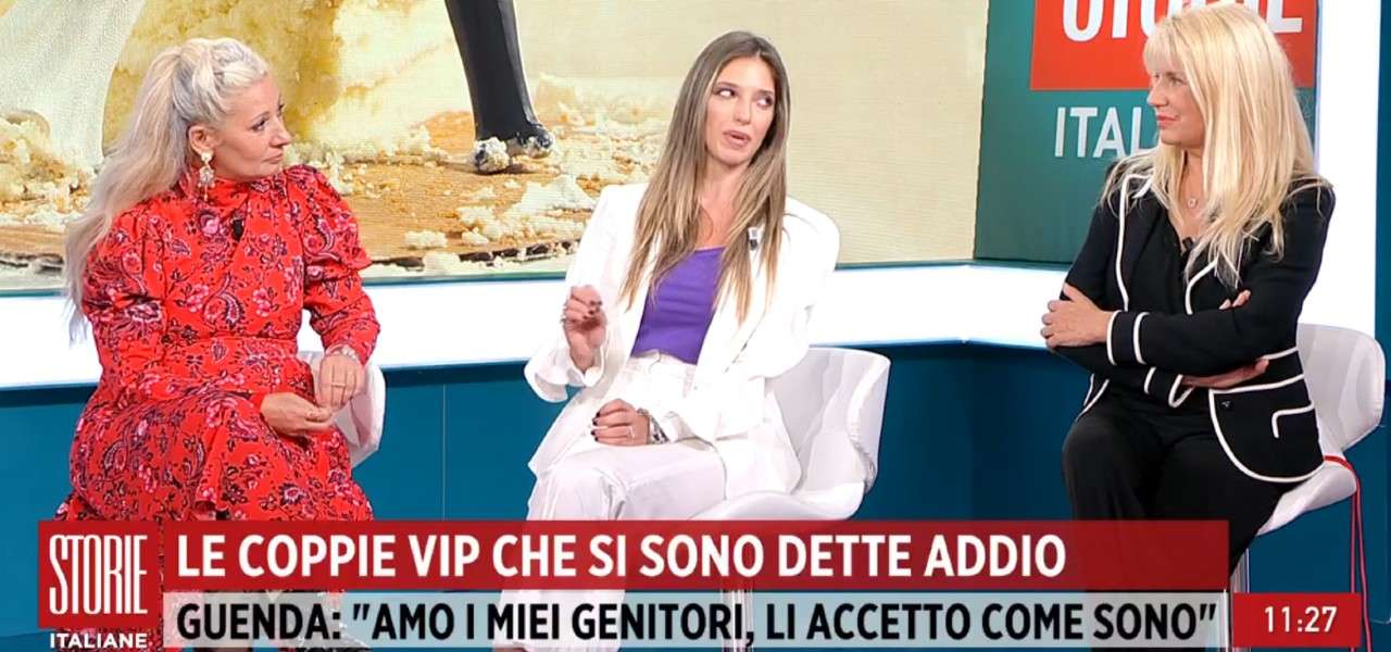 Guenda, la figlia maggiore di Maria Teresa Ruta, giornalista e conduttrice, e del giornalista sportivo e conduttore Amedeo Goria, vuole però “fare un plauso ai miei genitori che si sono separati in maniera molto delicata, non hanno mai parlato male l’uno dell’altro, papà stravede per mamma, e mamma ha sempre parole gentili nei confronti di papà nonostante abbia qualche critica”. E a ‘Storie Italiane’ rivela di essersi “molto arrabbiata perché loro per non farmi soffrire mi avevano nascosto il fatto che si fossero separati  e lo avevano nascosto sia a noi figli sia alla stampa. Per cui abbiamo visto un padre che progressivamente era meno presente in casa e l’abbiamo capito tardi e quindi io mi sono sentita presa in giro, e mi sono sentita anche stupida perché era una così evidente…”