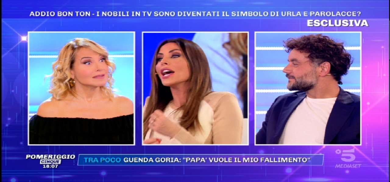 Si parla di nobili nella nuova puntata di Pomeriggio 5 con ospiti nobili e non. Tra questi c’è Guendalina Tavassi che annuncia sin da subito di avere una notizia shock da dare: “Anche io ho discendenze nobili.” Una rivelazione che spiazza i presenti e soprattutto Barbara D’Urso che chiede allora spiegazioni maggiori. La Tavassi spiega: “La mia bisnonna era una contessa, Angelini in Montefiore. Ho mandato anche i documenti, ce li ho veramente non li ho rubati. “ scherza in studio. Tiene dunque a sottolineare non solo che è tutto vero, ma di aver anche avuto una certa formazione: “una famiglia in cui erano davvero fan del galateo, siccome ho vissuto sempre sotto tante tante regole credo che mi sono ribellata in questo modo. Io so come si mangia, come si sta seduti a tavola…”, aggiunge.