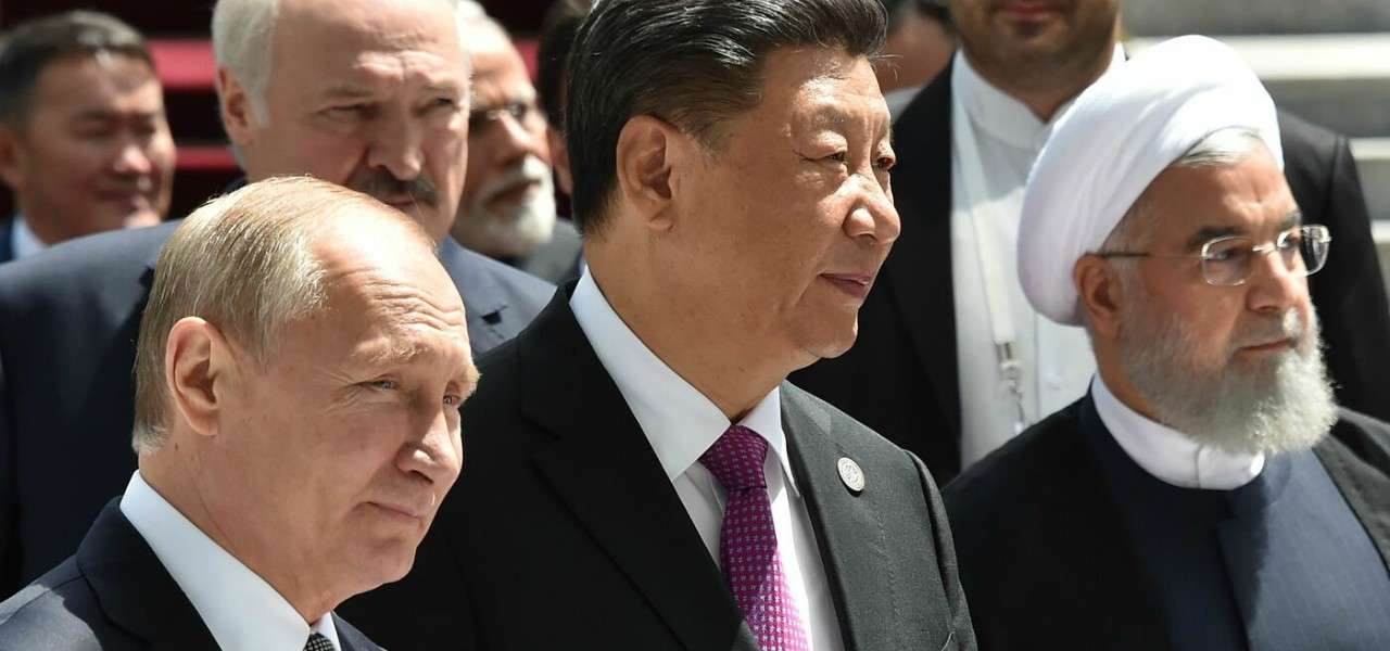 Vladimir Putin, Xi Jinping e Hassan Rouani (LaPresse)