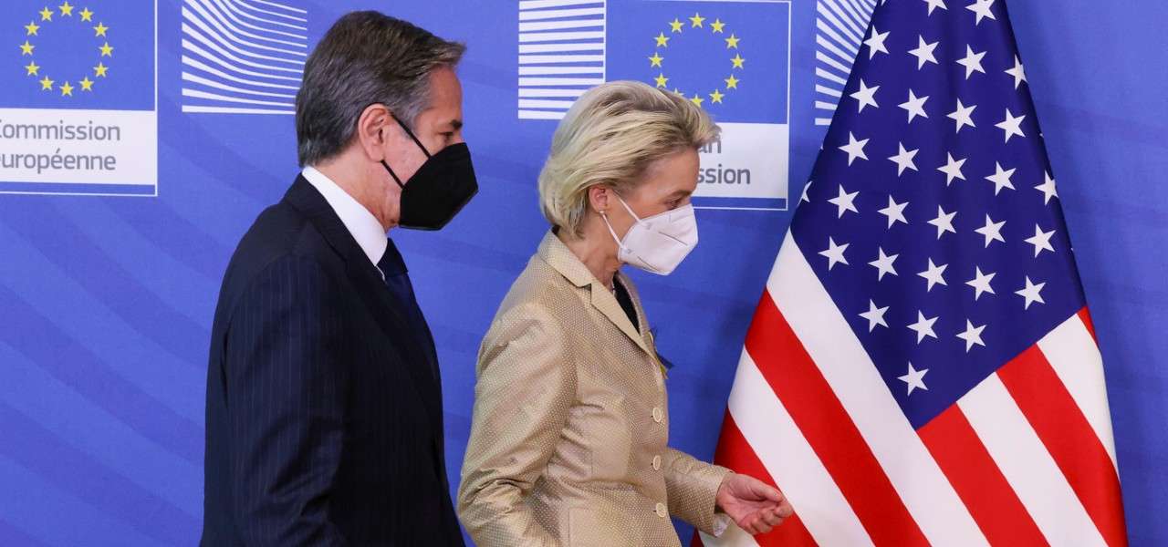 Il segretario di Stato Usa, Anthony Blinken, con Ursula von der Leyen, presidente della Commissione Ue (LaPresse)