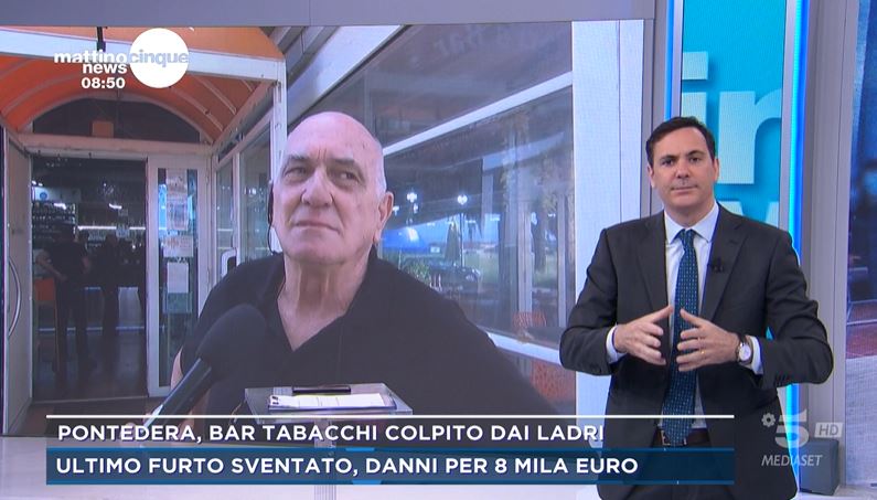 “Ho subito 54 furti“, l’ultimo negli scorsi giorni per un danno di 8mila euro. Questo quanto subito da parte di un barista e tabaccaio di Pontedera, in provincia di Pisa, che ha raccontato la sua drammatica vicenda in diretta su Canale 5 a Mattino Cinque News: “Non è stato portato via quasi nulla, da quando ho messo questo nebbiogeno, prima i danni erano enormi, vetrate tirate giù con la macchina e di tutto di più”.