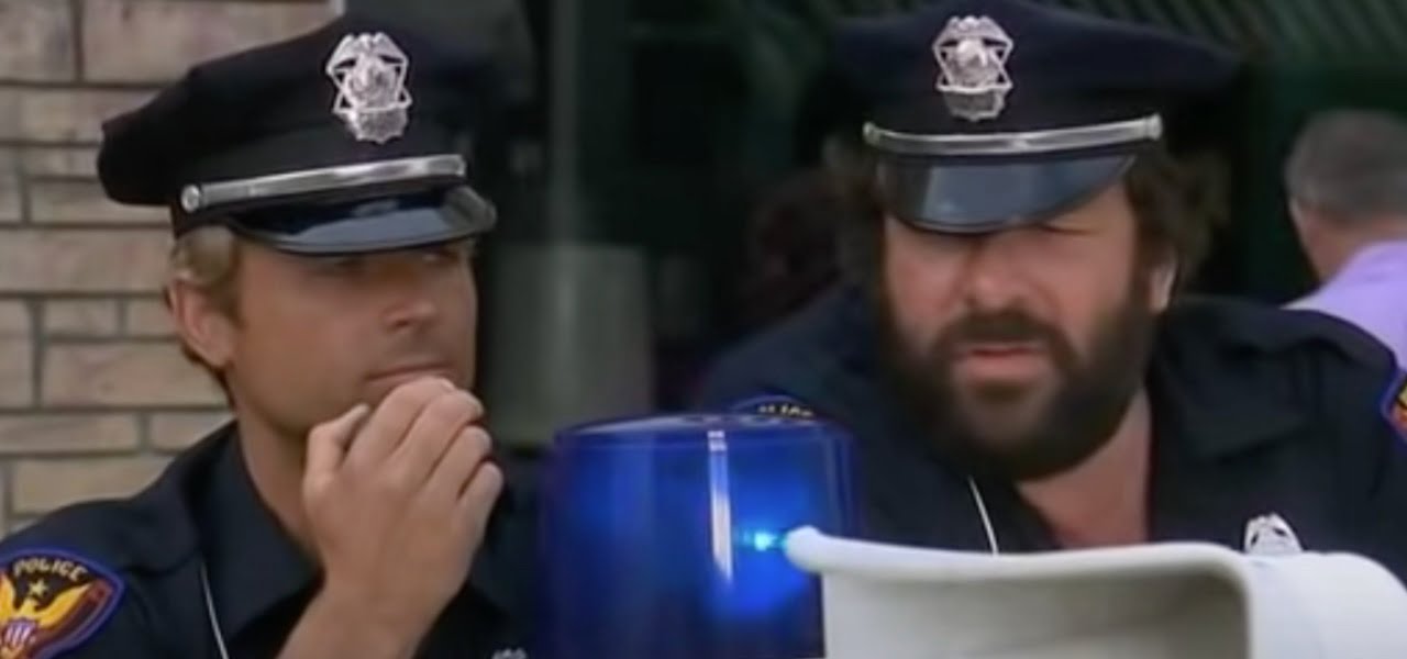 Solo una volta entrati nell’ufficio, si rendono però conto di essere in un Distretto di Polizia pieno di uomini armati fino ai denti e fanno quindi finta di essere interessati ad un corso per diventare agenti. Diventano quindi delle reclute e si arruolano nel corpo di polizia, assicurandosi un salario più che dignitoso e una certa rispettabilità in città. Nonostante i modi decisamente poco ortodossi che utilizzano i due poliziotti, riescono comunque a risolvere un misterioso caso di omicidio e a incastrare una banda di trafficanti di stupefacenti a esso collegata.