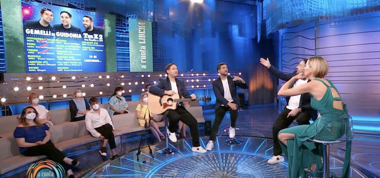 I Gemelli di Guidonia sono stati ospiti dell’ultima puntata di Da noi a ruota libera, la trasmissione condotta da Francesca Fialdini su Rai1. Si è trattata dell’ultima puntata nel corso della quale le interviste agli ospiti della padrona di casa sono state molto brevi la intense. In merito ai Gemelli di Guidonia, tutto è iniziato grazia alla trasmissione di Carlo Conti Tale e quale show: da quel momento il loro talento è riesploso completamente e questo ha portato ad un incremento palpabile del loro lavoro e ad una grande popolarità. Dopo aver trasmesso un loro video relativo alla vittoria a Tale e Quale Show, hanno commentato: “non rivediamo mai il video della vittoria, per scaramanzia”.