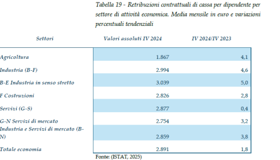 L’analisi delle retribuzioni in termini reali mostra, nella media nazionale, un divario, ancora marcato, rispetto alle economie europee, scontando la bassa produttività totale dei fattori, la mancata copertura della maggioranza dei lavoratori da contratti collettivi di secondo livello e anche per via dei significativi ritardi nei rinnovi di molti Ccnl rispetto alle scadenze ordinarie, in assenza di istituti o strumenti volti a coprire eventuali periodi di vacanza contrattuale.