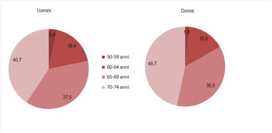 Circa il 70% della popolazione tra 65 e 74 anni riceve una pensione da lavoro