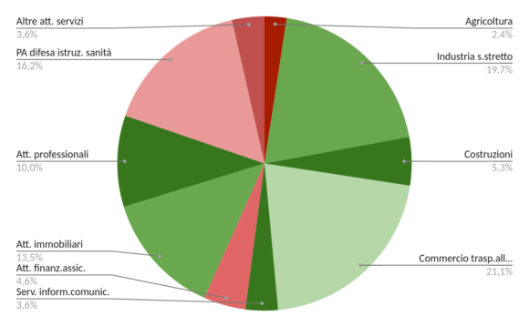 – Due soli settori appaiono al momento distanti dal completo recupero: i servizi finanziari e assicurativi, da un lato, e la classe residuale degli altri servizi, dall’altro lato.