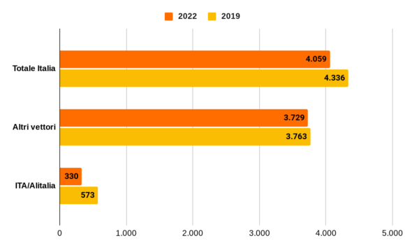 Fatta questa doverosa precisazione vogliamo ora fare il punto in maniera specifica sul mercato italiano, che è interessante sotto tanti punti di vista, ma lo è ancora di più per il debutto della nuova compagnia pubblica, ITA, che è presente per la prima volta in estate mentre in tutte le precedenti vi era Alitalia.