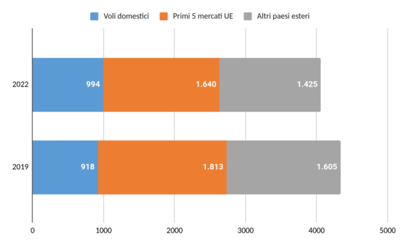(*) Voli Italia per area geografica di origine/destinazione (settimana dal 4 al 10/8. Fonte: Eurocontrol)