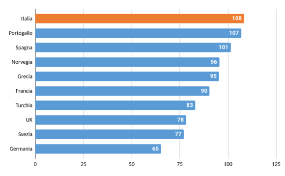Dopo l’Italia solo il Portogallo e la Spagna hanno un numero di voli superiore al pre-Covid, mentre la ripresa sembra molto più lenta negli altri principali Paesi europei: in Francia manca all’appello ancora il 10% dei voli nazionali, in Gran Bretagna il 22% e in Germania il 35%.