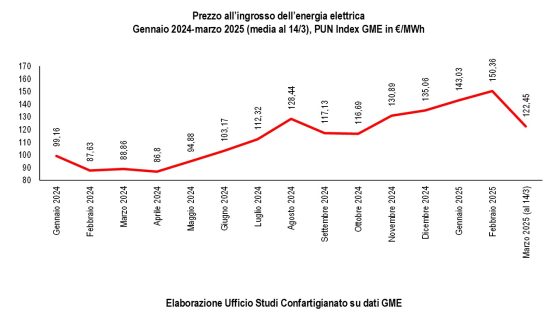 I dazi spingeranno in alto i costi di semilavorati e prodotti finiti. Su questo fronte va segnalato che nel trimestre dicembre 2024-febbraio 2025 le imprese italiane registrano un aumento del 30,4% del prezzo dell’energia elettrica, innescato da una forte escursione del prezzo sul mercato all’ingrosso. A marzo si osserva un raffreddamento delle quotazioni sul mercato elettrico, in riduzione del 14,3% rispetto alla media del trimestre precedente. Un rialzo dei prezzi dell’elettricità allarga il già pesante gap di competitività delle imprese italiane.