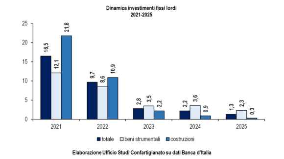La stretta monetaria per ridurre l’inflazione – che a dicembre è al 9,2% in Eurozona e al 12,3% in Italia – e lo spostamento in avanti della spesa prevista dal Piano nazionale di ripresa e resilienza (Pnrr) portano a una vistosa decelerazione della dinamica degli investimenti, che nel 2023 è prevista in salita del 2,8%, dopo il più performante +9,7% dell’anno appena concluso. Gli investimenti in costruzioni – driver della ripresa post pandemia – dopo una crescita a doppia cifra nel 2022 (+10,9%) si fermano al +2,2% nel 2023.