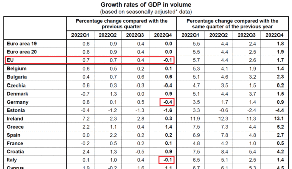 I dati di Eurostat non sembrano sorridere all'Ue, che ha chiuso l'ultimo trimestre del 2022 con il segno meno e ora rischia la recessione tecnica
