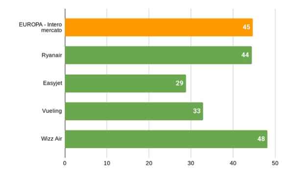 Esaminato il quadro generale del trasporto aereo europeo è interessante vedere se vi sono differenze significative tra i maggiori Paesi e tra i maggiori vettori, sia di tipo tradizionale che low cost, inclusa la nostra Alitalia. Per semplicità di analisi ci limitiamo a una fotografia del trasporto aereo riferita all’ultima settimana disponibile, quella compresa tra lunedì 29 settembre e lunedì 5 ottobre.