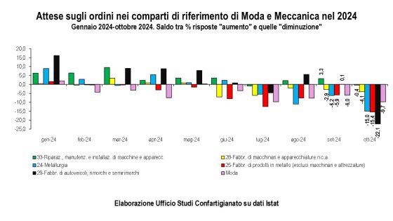 i avvicina la fine dell’anno, periodo di bilanci, e quello dei ricavi dei due comparti in esame è in profondo rosso. Un’anticipazione del Rapporto annuale di Confartigianato che sarà pubblicato in occasione dell’Assemblea di mercoledì prossimo, evidenzia che, sulla base dell’andamento dell’indice mensile del fatturato dell’Istat, nei primi otto mesi del 2024 le imprese della moda e meccanica hanno registrato una perdita di ricavi pari a 23,5 miliardi di euro, equivalenti a 2,9 miliardi di euro al mese.