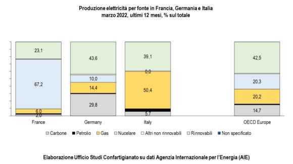 Il mix di generazione elettrica sbilanciato sul gas rende strategico per l’Italia il posizionamento di un tetto al prezzo di questa commodities, un orientamento confermato, dopo il Consiglio europeo del 23-24 giugno, anche nell’ultima riunione del G7 . Negli ultimi dodici mesi terminanti a marzo 2022 l’Italia produce il 50,4% dell’energia elettrica con il gas, a fronte del 14,4% della Germania e il 6% della Francia. Le conseguenze sui prezzi dell’elettricità sono evidenti: secondo Eurostat a maggio 2022 il prezzo al consumo dell’energia elettrica in Italia sale del 73,4% su base annua, in Germania del 21,5% mentre in Francia si ferma al 6,5%. Sul fronte delle imprese, nell’ultima analisi trimestrale del sistema energetico italiano di Enea si stima che nel secondo trimestre 2022 il prezzo è più che raddoppiato rispetto a dodici mesi prima.