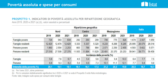 Finalmente una buona notizia, anzi, no. L’incipit del rapporto Economia di Istat relativo alla povertà nel 2021 destava preoccupazione, ma, indomiti e impegnati nella lettura, la sintesi riportata era, o per lo meno appariva, promettente: «Secondo le stime preliminari, nel 2021 le famiglie in povertà assoluta in Italia sono il 7,5% (7,7% nel 2020) per un numero di individui pari a circa 5,6 milioni (9,4%, come lo scorso anno), confermando sostanzialmente le stime del 2020». Scritto così è lecito pensare come, nonostante tutto e il contrario di tutto, il dato potrebbe apparire positivo ovvero: meno italiani poveri rispetto all’anno precedente. Ma, e purtroppo in economia i “ma” fanno la differenza e dettano gli umori, proseguendo nella medesima e successiva lettura, si apprendeva come: «Senza la crescita dei prezzi al consumo registrata nel 2021 (+1,9%) l’incidenza di povertà assoluta sarebbe stata al 7,0% a livello familiare e all’8,8% a livello individuale, in lieve calo, quindi, rispetto al 2020». A ragion veduta, purtroppo, l’incipit iniziale era (ovviamente) corretto: «L’inflazione annulla la lieve ripresa delle condizioni economiche delle famiglie».