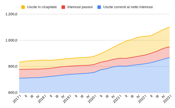 – Lo stesso si è verificato per quanto riguarda le altre uscite di parte corrente, aumentate di 37 miliardi nello stesso periodo (da 113 nel 2019 a quasi 150 negli ultimi quattro trimestri). Esse dovrebbero includere almeno una parte dei ristori e delle spese sorte a seguito del Covid.