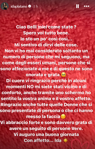 Così ha concluso: “Ringrazio anche tutte quelle Donne che si sono presentate di persona e ci hanno messo la faccia. Vi abbraccio forte e sono davvero grata di avere un seguito di persone Vere. Vi auguro una buona giornata, con affetto, Ida”. Parole, quelle di Ida, che sembrano proprio un addio.