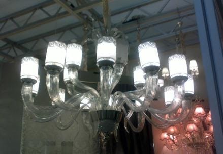 Noi dal 2000 abbiamo deciso di usare solo Swarovski. Partiamo dai loro nuovi prototipi e poi li saldiamo nei nostri lampadari. Noi ci mettiamo la tecnica compositiva, mentre lo stilista detta quella che è la tendenza del momento. Se, per esempio, presenta la linea grigia anche noi ci adeguiamo, e lo stesso per il rosa o per altri colori.