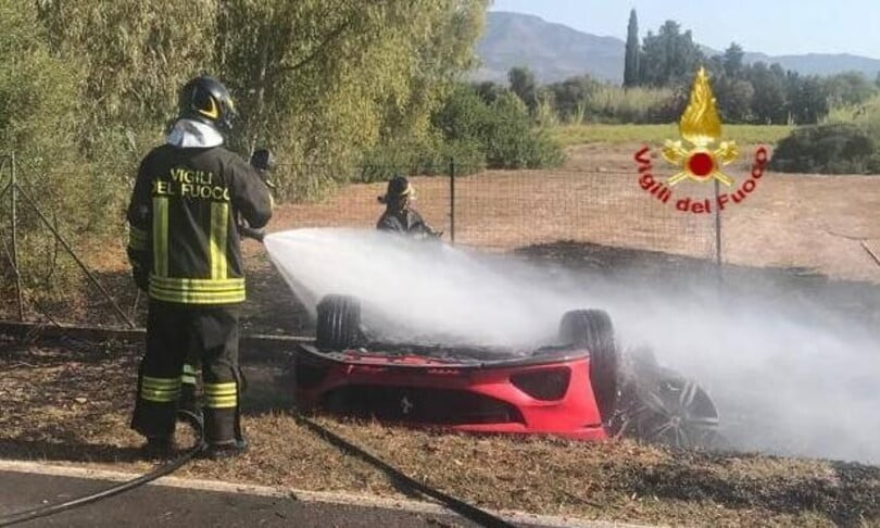 Nell’azione, però, tocca la Lamborghini e poi il camper, mandando fuori strada la prima e facendo ribaltare il secondo. Ad avere la peggio è però la stessa Rossa, che finisce fra gli alberi ai lati della strada per poi prendere fuoco ed esplodere. Purtroppo a bordo della Ferrari vi erano due turisti svizzeri, un uomo di 67 anni e la moglie di 63, entrambi rimasti carbonizzati nell’abitacolo.