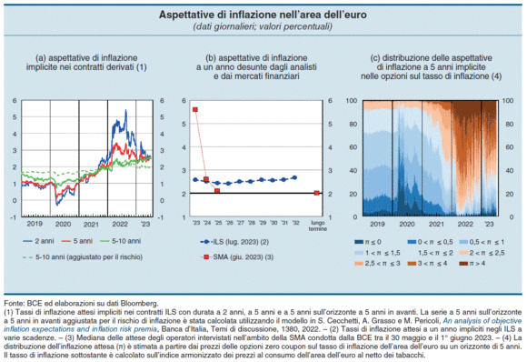 «Tra la fine di marzo e l’inizio di luglio i rendimenti dei contratti di inflation-linked swap (ILS), una misura delle aspettative di inflazione nell’area dell’euro desunta dai mercati finanziari, sono diminuiti sia sull’orizzonte a due anni, sia su quello a cinque anni (entrambi al 2,5 per cento dal 3,0 e 2,6, rispettivamente». Sulla base di queste indicazioni, è indubbio, il plauso all’operato della Bce.