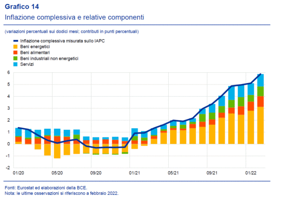Non dite che non ce l’avevano detto. In effetti, scontenti del fatto, non solo l’hanno detto più volte, ripetuto ancora, e sottolineato in varie sedi, ma, addirittura, l’hanno anche scritto: nel consueto e periodico “Bollettino economico Bce n. 2/2022” diffuso la scorsa settimana. Probabilmente, vista la mastodontica profondità di analisi (conta ben 165 pagine la versione italiana del documento), in molti si saranno fermati alla sola lettura dell’introduzione con qualche occhiata curiosa e incuriosita su alcuni grafici riportati.