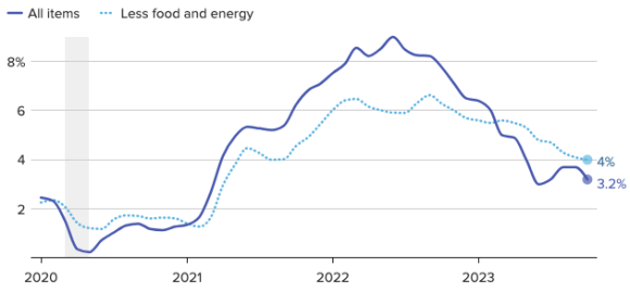 L'inflazione americana a ottobre 2023 si è attestata al 3,2% e i mercati proseguono la tendenza rialzista, ma alcuni dati andranno monitorati