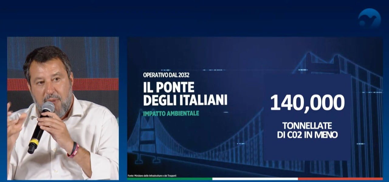 PNRR, piano casa e Ponte sullo Stretto: questi i tre macro-temi affrontati dal Ministro delle Infrastrutture Matteo Salvini intervenuto oggi all’incontro sul PNRR al Meeting Rimini 2023. «E’ un’opera europea, non riguarda solo Sicilia e Calabria. E la faranno gli ingegneri italiani», sottoscrive Salvini parlando del “Ponte degli italiani” tra Messina e Reggio Calabria, opera-simbolo del Governo di Centrodestra per i prossimi anni. L’auspicio è che i cantieri possano cominciare già dall’estate 2024: «L’obiettivo è quello di avere la prossima estate, quando si farà il nuovo Meeting annuale, la telecamera che inquadra i cantieri che hanno iniziato il loro lavoro, che potremo osservare qui da Rimini». Spiegando poi meglio come potrà essere il Ponte sullo Stretto, Salvini aggiunge «Il ponte è a campata unica di 3,3 km – ha aggiunto – non ha tralicci in acqua, è un’opera green. E’ un anello di congiunzione Palermo-Roma-Milano-Berlino-Stoccolma, un’opera che riporta l’Italia e il Mediterraneo al centro».