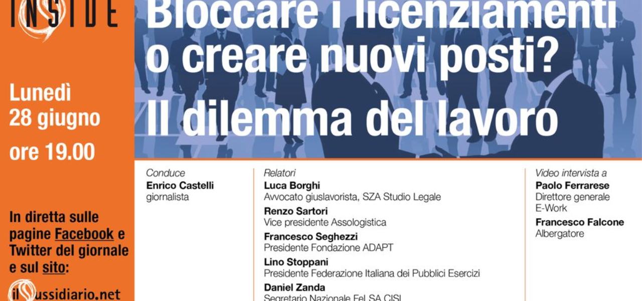 Inside: diretta video streaming incontro sul mondo del lavoro. "Bloccare i licenziamenti o creare nuovi posti?". Ospiti: Borghi, Sartori, Seghezzi, Stoppani, Zanda