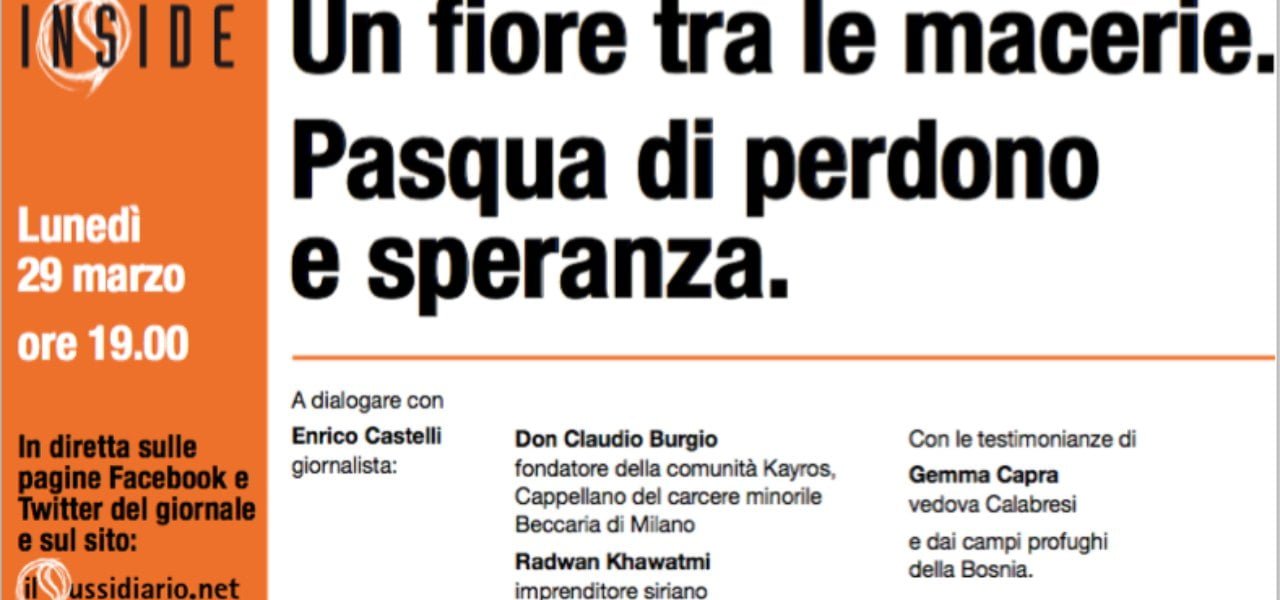 Inside, “Un fiore tra le macerie. Pasqua di perdono e speranza”: IlSussidiario.net incontra Don Claudio Burgio, Gemma Capra Calabresi, Radwan Khawatmi, Franca Zambon