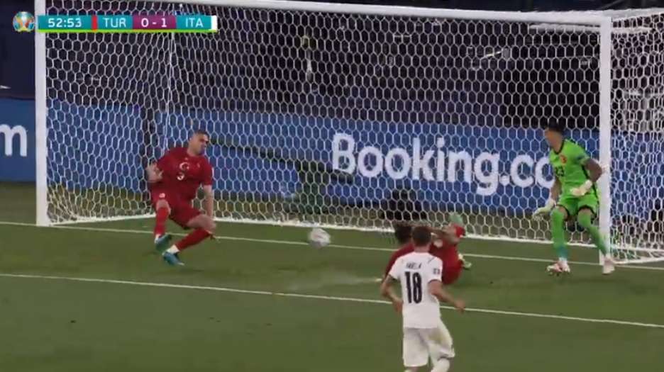 I turchi si ritirano nella loro metà campo e sperano nelle ripartenze. Buona l’impostazione del gioco dettata da Jorginho e Locatelli. Potrebbe esserci un bel rigore per gli Azzurri, ma i varisti olandesi stanno zitti. I nostri, sempre avanti, costringono il portiere avversario a un paio di interventi quasi miracolosi. L’attacco dei rossi non esiste, tantomeno Calhanoglu, mentre sono splendidi i tagli di Berardi, con Donnarumma che assiste da lontano. Finisce a reti inviolate un primo tempo da almeno doppio vantaggio per noi.