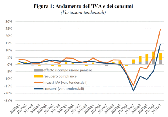 I ricercatori della Banca d'Italia hanno evidenziato come il gettito Iva sia cresciuto inaspettatamente subito dopo l'inizio della pandemia