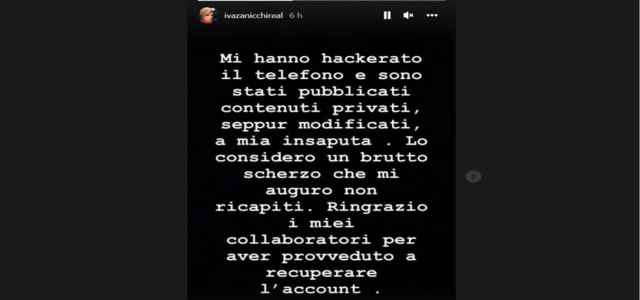 “Mi hanno hackerato il telefono e sono stati pubblicati contenuti privati, seppur modificati, a mia insaputa. Lo considero un brutto scherzo che mi auguro non ricapiti. Ringrazio i miei collaboratori per aver provveduto a recuperare l’account“, ha scritto la cantante come potete vedere qui in basso.