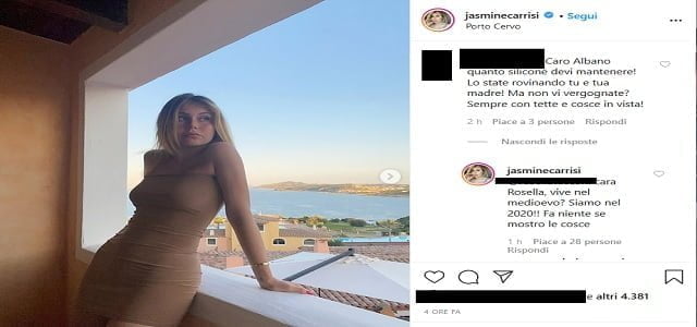 Jasmine Carrisi si gode le vacanze a Porto Cervo pubblicando su Instagram foto in cui sfoggia tutta la sua bellezza. La figlia di Al Bano e Loredana Lecciso, dopo l’esordio con il brano “Ego” con cui ha dato ufficialmente inizio alla sua carriera musicale cercando di seguire le orme di papà Al Bano, continua ad essere nel mirino degli haters. Sotto le ultime foto pubblicate su Instagram, infatti, oltre ad aver ricevuto tantissimi complimenti, non sono mancati gli attacchi degli haters. Jasmine, sempre più bella, finisce spesso nel mirino degli utenti per il suo aspetto fisico. Le critiche più feroci riguardano il suo aspetto fisico. Spesso, infatti, viene accusata di essersi rifatta nonostante sia ancora giovanissima. Jasmine, però, stavolta, ha deciso di replicare rispondendo personalmente alla critica ricevuta.