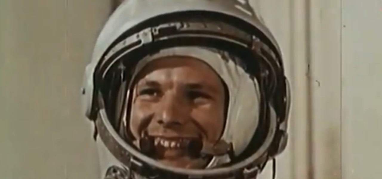 Jurij Gagarin, l'astronauta russo primo uomo a volare nello Spazio. Storica la sua affermazione a bordo del Vostok 1: "La Terra è blu!"