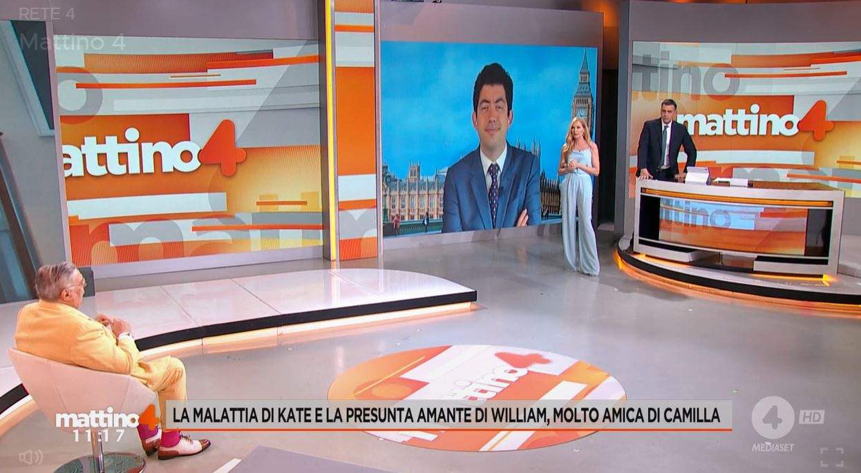 In studio sir Nunzio Alfredo D’Angieri, che ha invece commentato: “La principessa Kate Middleton ha dei problemi fisici ma sappiamo che si sta rimettendo molto bene, molti parlano, fanno dalle supposizioni, ma non può passare nulla se non lo dice la corona, Gatti lo sa bene, e ovviamente se non è ancora uscita alcuna notizia ufficiale è probabile che la principessa non ci sarà, però c’è Re Carlo che è una bella cosa”.