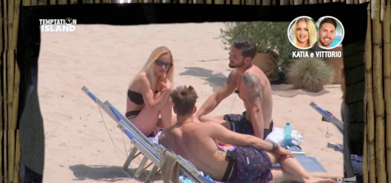 Katia e Vittorio sono una delle coppie di Temptation Island 2019. La biondissima concorrente si è fatta subito notare per le sue mise colorate e per il suo “fotonico” destinato a diventare un tormentone. Tra cambi d’outfit, un tuffo in piscina, Katia è entrata subito in sintonia con Giovanni a cui confida: “se sono arrivata qua e perché mi manca qualcosa e se quel qualcosa lo vedo in un ragazzo, io mi lascio andare non è che penso c’è il mio ragazzo che mi guarda, non mi faccio scrupoli”. La prima impressione è stata più che positiva precisa la fidanzata al tentatore che contraccambia la cosa: “sei una ragazza molto alla mano, tranquilla”. Vittorio, chiamato nel pinneto, guarda attonito il comportamento della fidanzata Katia che flirta con il tentatore Giovanni; il ragazzo non la prende bene visto che poi si confida con gli altri ragazzi: “a me da fastidio il tempo e i sentimenti investiti e quello che mi fa molto male è che non sono passati nemmeno 24 ore dal nostro ingresso qui…” (aggiornamento di Emanuele Ambrosio)