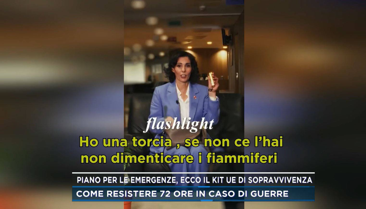 Ma cosa contiene il kit di sopravvivenza Ue? Scopriamolo insieme vedendo il video che sta circolando sul web in queste ultime ore (che trovate qui sotto), a cominciare da un paio di occhiali, che la commissaria Hadja Lahbib definisce “super importanti se vuoi vedere cosa sta succedendo”. Poi troviamo i documenti in una costudoia impermebabile “Un must nella piovosa Bruxelles”. E ancora: “Una torcia, se non ce l’hai non dimenticare i fiammiferi e l’accendino”.