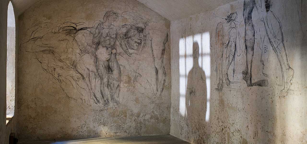 Ad ogni modo chi in futuro visiterà le sopra menzionate Cappelle Medicee, ossia quei luoghi di sepoltura destinati ai più illustri esponenti della famiglia Medici e che oggi sono un museo ricavato in alcune delle aree della basilica di San Lorenzo, grazie proprio a una delle ultime volontà di Dal Poggetto si troverà di fronte una sorta di tesoro nascosto e che dice molto del Michelangelo più ‘privato’ al di là delle opere pubbliche e che da secoli sono oramai patrimonio dell’umanità. In passato la stanza segreta era accessibile solo agli studiosi (mentre dal 2013 anche al pubblico ma solo attraverso un’installazione multimediale al di fuori della stanza): qui Michelangelo disegnò non solo a carboncino alcune studi di opere che avrebbe poi realizzato, tra cui proprio quelle della Sagrestia Nuova, ma anche rivisitazioni del celeberrimo David in Piazza della Signoria o di altri suoi lavori nella Cappella Sistina. Tra i misteri che aleggiano attorno a questo luogo tanto minuscolo quanto ricco di storia, e in cui i disegni sono rimasti a lungo nascosti sotto uno strato di biacca, c’è uno dei graffiti ritenuto oggi un possibile autoritratto dell’artista stesso e che mostra una figura china su se stessa. Ma questo è solo uno dei piccoli misteri che aleggiano ancora attorno alla stanza segreta di Michelangelo, luogo dell’anima dell’artista dove, al di là del tempo che effettivamente vi trascorse e della reale attribuzione di tutti i disegni alla sua mano, è bello immaginare il genio intento a creare e andando oltre i limiti angusti imposti da quel nascondiglio di fortuna.