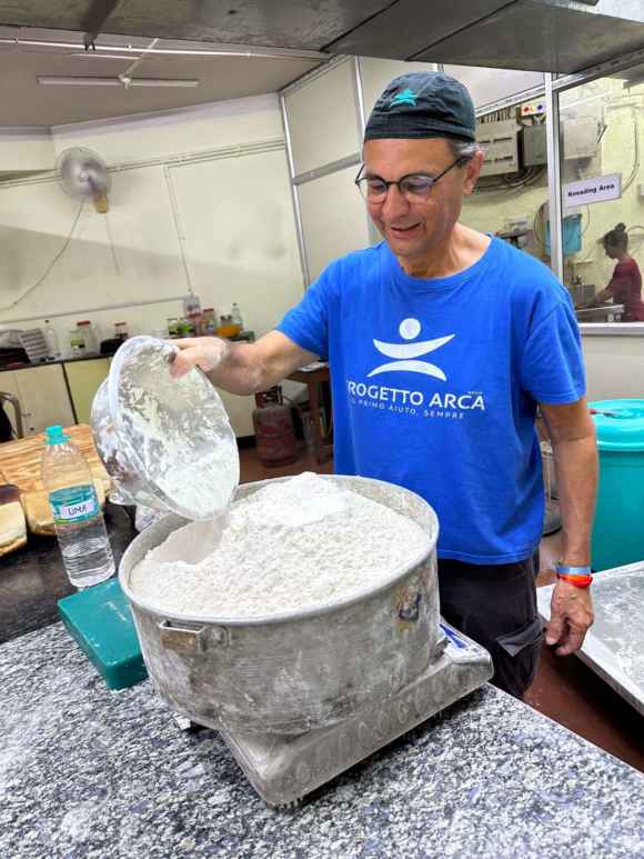 In realtà è nata prima di Progetto Arca. Poco più di trent’anni fa ero stato a Calcutta quando Madre Teresa era ancora in vita e avevo fatto un’esperienza di tre mesi con lei. I miei maestri sono stati Fratel Ettore a Milano con i senza dimora e Madre Teresa a Calcutta. E verso di loro ho sempre avuto un anelito di restituzione. Negli ultimi anni abbiamo già iniziato a fare qualche progetto internazionale per prestare aiuto in situazioni di emergenza dall’Africa a Lesbo, dall’Ucraina al terremoto in Turchia, però mi sono detto che dovevamo fare qualcosa anche a Calcutta. Credo sia la città più povera al mondo dove ancora si muore di fame per strada. E così ho contattato le suore di Madre Teresa e attraverso l’associazione Seva Kendra, collegata alla Caritas di Calcutta, è stata assegnata la location dove abbiamo realizzato il forno. Lì abbiamo iniziato a produrre pane (adesso siamo a un quintale al giorno) e dal mese scorso anche i primi e i dolci, che vengono consegnati alle suore di Madre Teresa per essere poi distribuiti ai senza dimora che si rifugiano nelle stazioni.