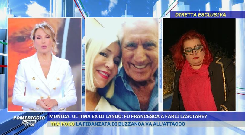 Si torna a parlare del caso di Lando Buzzanca, e del matrimonio con la giornalista Francesca Della Valle, negli studi di Pomeriggio 5. A riguardo, nella giornata di ieri, Barbara D’Urso ha invitato nuovamente l’ultima ex del noto attore, la giornalista Monica Macchioni, colei che sarebbe stata nel cuore di Lando Buzzanca prima dell’arrivo di Francesca. Sulla storia d’amore fra i due si è espressa Olga Bisera, nota attrice e amica proprio di Lando, una delle prime Bond Girl della storia di 007.