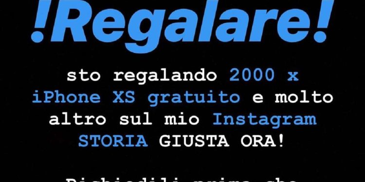 Giornata di annunci e di regali da parte di Laura Pausini ai suoi fan? Ebbene no. Proprio poco fa sul profilo Instagram della cantante è apparso un annuncio e una serie di storie in cui si parla di iPhone XS in regalo insieme ad una serie di auto e di gift card e in molti, quasi in mille, hanno subito messo mi piace alla foto. La verità è che non c’è alcun regalo e che non è stata Laura Pausini a lanciare questa campagna né per amore dei suoi fan e né per pubblicità, ma solo perché è finita vittima di un hacker. Il profilo Instagram della cantante è stato hackerato e chi sta accedendo in questi ultimi minuti si ritrova davanti non solo l’annuncio di tutta questa merce in regalo ma anche il link al sito dove registrarsi e richiederli “prima che vadano a ruba”. Una vera e propria truffa che Laura Pausini e il suo staff stanno cercando di arginare.