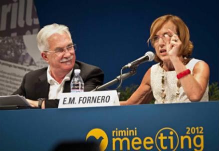 “L’abbraccerei per quello che ha detto sulle tasse”, sbotta Raffaele Bonanni, Segretario generale della Cisl, e allude alle dichiarazioni rese al mattino, a Radio Anch’io, dal ministro del Lavoro Elsa Fornero che, seduta accanto a lui sul palco della Sala A3 di Rimini – piena ma non gremita – si schermisce sorridendo: aveva semplicemente ribadito che oggi in Italia, sul costo del lavoro, grava un cuneo fiscale pesantissimo, da ridurre appena possibile. Sante, anche se ovvie, parole. Ma le simpatie restano tra i due, Elsa e Raffaele. Perchè all’incontro su “Crescita e lavoro” il sindacalista col pizzetto “buca”, soprattutto quando rivendica la sostanziale unità dei cattolici, l’amministratore delegato dell’Enel Fulvio Conti riscuote l’applauso che si deve alle persone serie, il conduttore Bernhard Scholz, presidente della Compagnia delle Opere, svolge egregiamente il suo ruolo di snodo, ma la ministro, no: lei non trasmette emozioni alla platea. Che la saluta con un applauso educato, una decina di secondi, ma non l’interrompe, non si compiace, non vibra. “E’ meglio quando chiagne (piange, ndr)”, chiosava ironico in sala un ciellino napoletano.