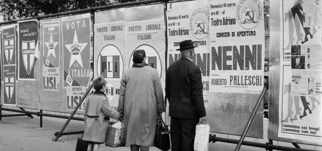 Sono gli anni dei partiti di massa, animati da passioni e ideologie. E sono gli anni dei grandi politici: De Gasperi, Togliatti, Nenni, Pertini, Saragat, Fanfani, La Malfa, Malagodi…