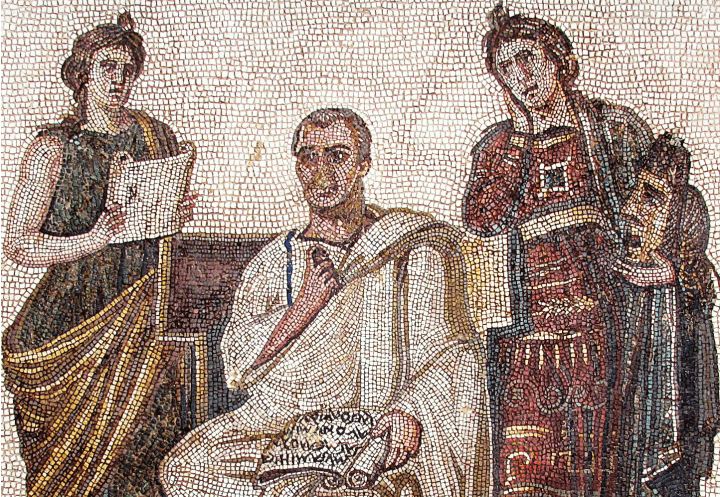 Virgilio con l'Eneide tra Clio e Melpomene (Museo del Bardo, Tunisi) (Gmihail, Serbian Wikipedia)