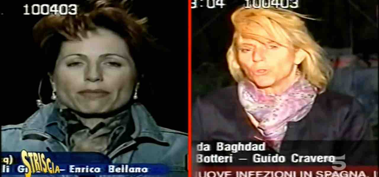 Poche ore dopo Giovanna Botteri in collegamento, sempre da Baghdad, con il TG3 da una versione completamente difendete: “da un paio di ore sono ricominciati i bombardamenti”. Allora Staffelli si domanda: “secondo voi chi ha ragione” e poco dopo viene riproposto un altro confronto tra le due. Lilli Gruber in un servizio del TG1 dice: “le notizie che abbiamo appreso proprio pochi minuti fa è questo attentato kamikaze si è verificato a Saddam City” mentre la Botteri al TG3 racconta tutt’altro: “l’uomo si è fatto esplodere nel mezzo del gruppo dei Marines, è successo pochissimo lontano da qui, noi ci troviamo all’hotel Palestine, è successo a pochissimi metri da qui”. E’ chiaro che qualcosa non torna: entrambe le giornaliste hanno assistito alla stessa scena dell’attentato, ma dando due versioni differenti. Anche Staffelli fa una riflessione: “insomma c’è una contraddizione” – precisando – “le giornalista parlano di due zone diversi di Baghdad, ma la rivalità tra le due prime donne delle giornalista d’assalto”. Il servizio poi si conclude con una rivalità che va ben oltre il lavoro, visto che si parla di gare di look con le varie sciarpe – foulard sfoggiate dalla Gruber durante i suoi tantissimi anni da inviata al TG1 fino alla rivalità di acconciature tra le due giornaliste con Staffelli che conclude dicendo: “all’interno di una guerra c’era un’altra guerra”. Clicca qui per vedere il video completo del servizio di Valerio Staffelli.