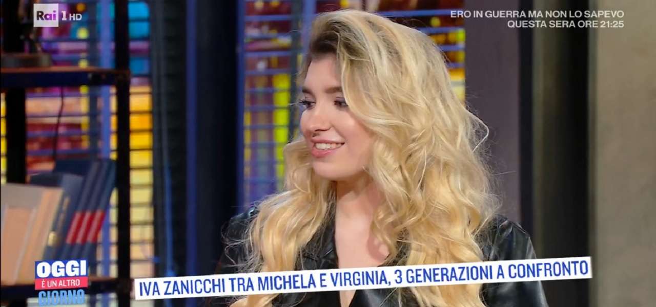 Presente in studio a Oggi è un altro giorno, Virginia Catellani ha affiancato la mamma Michela Ansoldi e la nonna Iva Zanicchi. Quest’ultima, incalzata da Serena Bortone, ha parlato così della nipote: «Lei è adorabile. Quando era ragazzina mi chiedeva perché ero poco diva. In un’intervista aveva detto che ero brava ma sputavo un po’ quando parlavo».