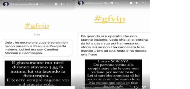 Sui social si sono mostrati sempre molto uniti, affiatati e innamorati ed è stata la stessa Soraia a rassicurare i fan subito dopo l’operazione alla schiena subita da Luca. Da qualche giorno, però, i fan hanno notato alcuni movimenti social facendo pensare ad una crisi in corso tra i due. A parlare dell’argomento è stata Deianira Marzano che, tra le storie del proprio profilo Instagram, ha svelato quello che starebbe accadendo alla coppia.