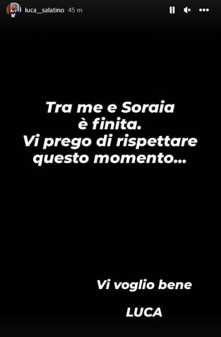 Luca Salatino e Soraia Ceruti si sono lasciati: l'annuncio dell'ex tronista di Uomini e Donne su Instagram "Rispettate questo momento"