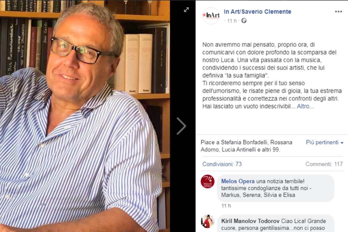 La scomparsa di Luca Targetti, ex responsabile del cast alla Scala nonché tra i più importanti agenti di musica lirica italiano ha lasciato sgomenti coloro che hanno avuto l’onore e il piacere di lavorare con lui. Anche sui social sono giunti i messaggi di cordoglio, e tra i tanti anche quello del tenore Riccardo Massi che su Instagram nella serata di ieri, dopo aver appreso la drammatica notizia, aveva esordito: “Caro Luca Targetti, ancora non ci posso credere…”. L’artista, celebre per le sue esibizioni nei prestigiosi teatri italiani Teatro Giuseppe Verdi e La Scala, aveva proseguito nel suo messaggio di cordoglio: “Questo maledetto Virus ti ha portato via così, troppo presto. Ricordo ancora quanto credesti in me in quella estate del 2007 quando mi volesti per fare il concorso dell’accademia della Scala… E anche quando mi presentasti al maestro Barenboim due anni dopo… E fu l’inizio della mia carriera”. Oggi, con grande dolore, Massi saluta per l’ultima volta il grande Luca Targetti: “Non ti ringrazierò mai abbastanza. Buon viaggio caro Luca, dovunque tu sia”. (Aggiornamento di Emanuela Longo)